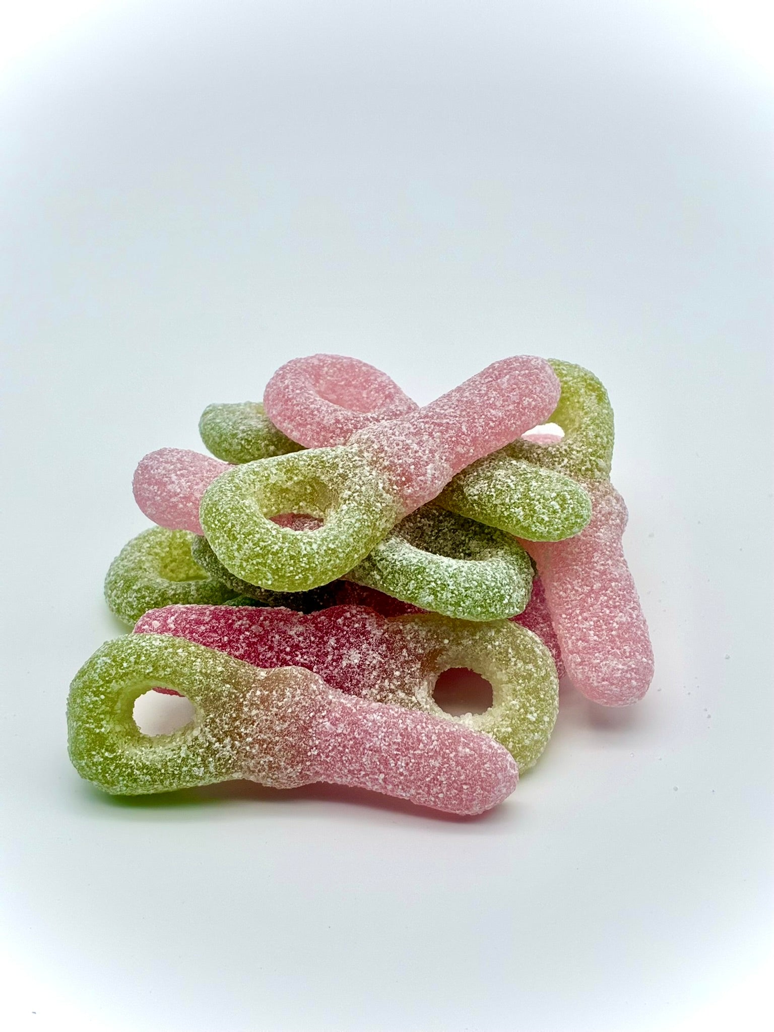 Zucker, Glukosesirup, Weizenstärke, Wasser, modifizierte Maisstärke, Säuerungsmittel (E270, E296, E330, E350), modifizierte Kartoffelstärke, Aromen, Lebensmittelfarbe (Konzentrat aus Spirulina, Saflor), Schwarzes Karottensaftkonzentrat.